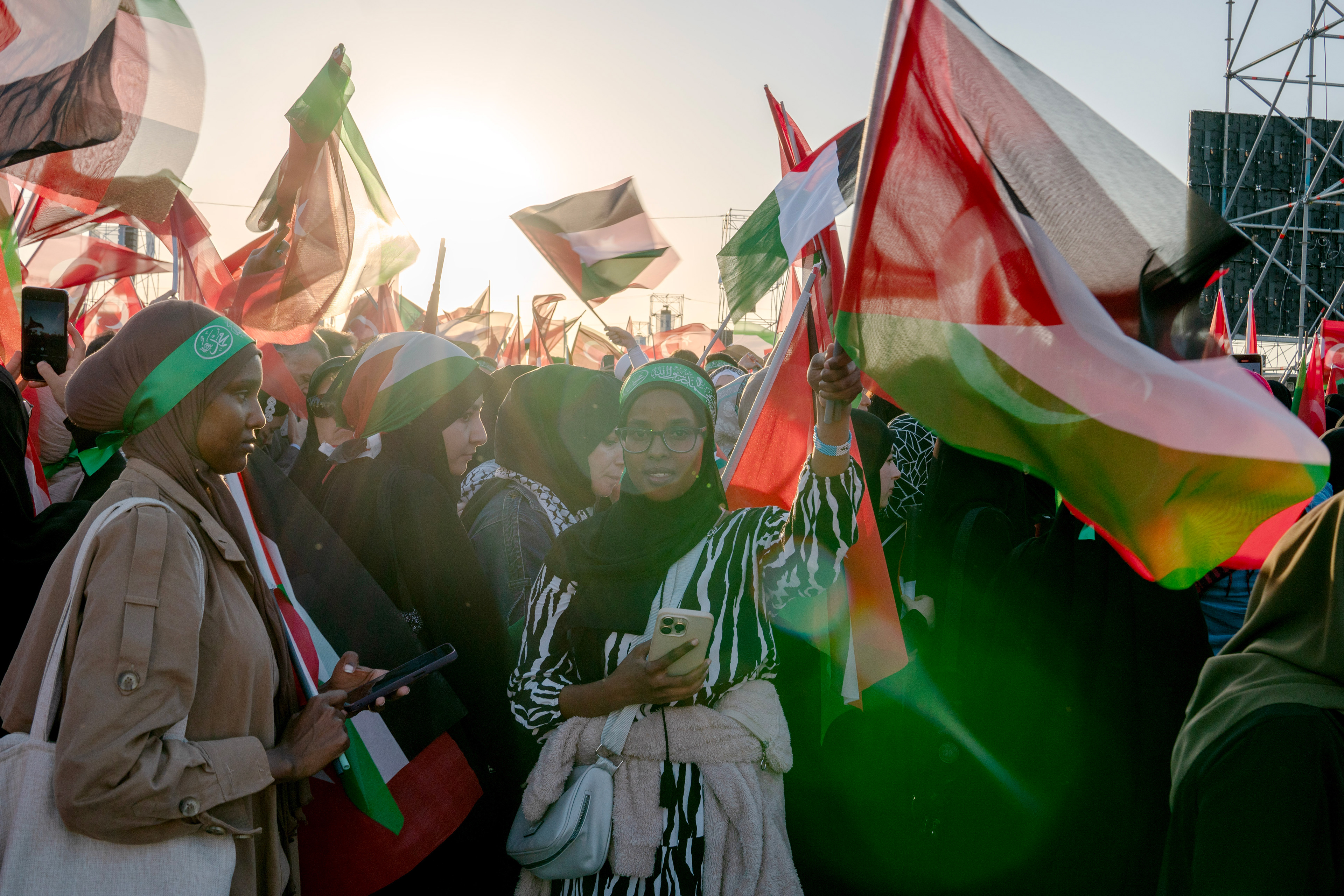 Pro-Palestine people attend the Great Palestine rally held and wave flags at Ataturk Airport in Istanbul, Turkey on October 28, 2023.