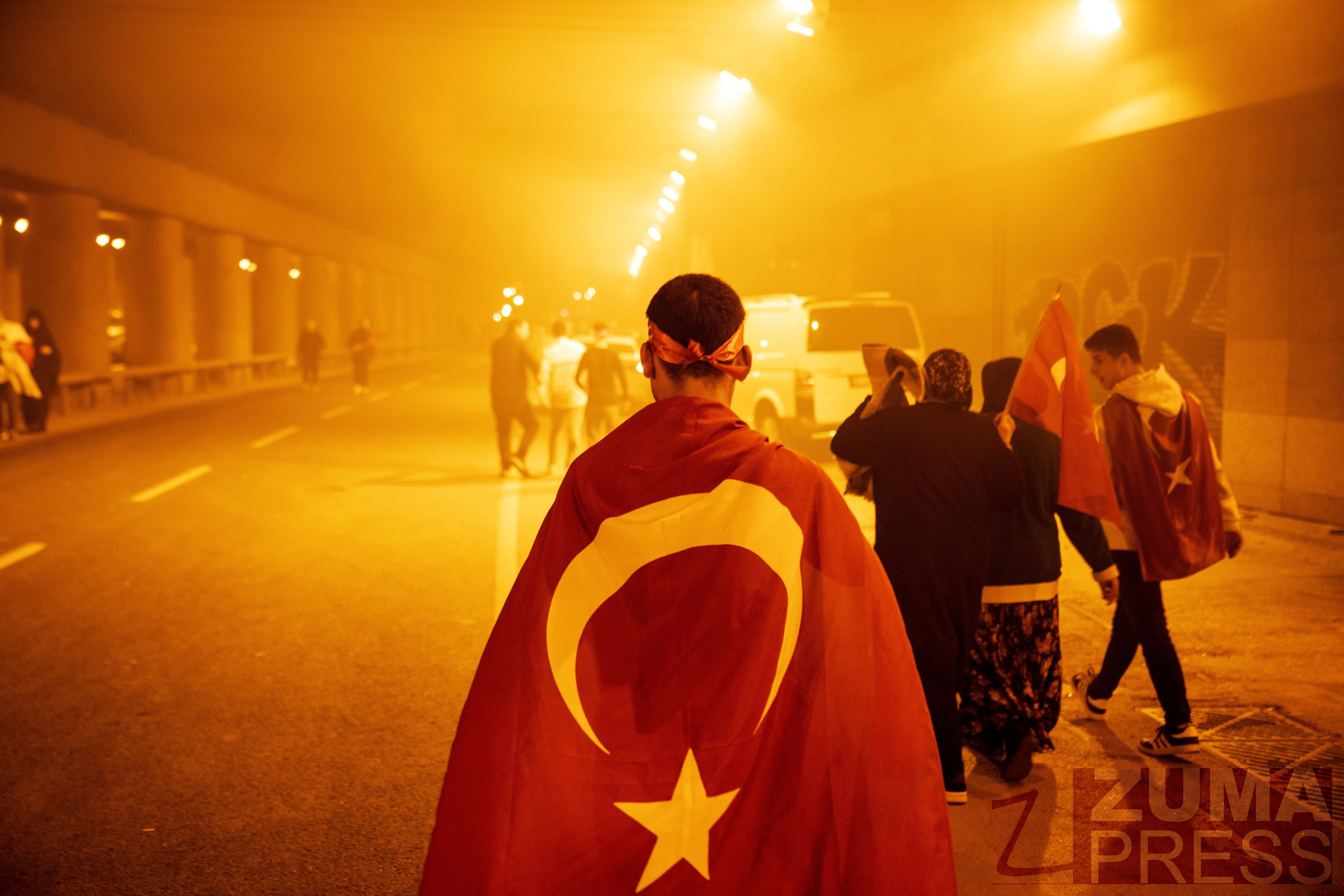 Supporters of Recep Tayyip Erdogan, President of Turkey and the presidential candidate are attended the election campaign rally in Istanbul's Kasimpasa on may 13, 2023, ahead of the Turkish general elections on date May 14, 2023.