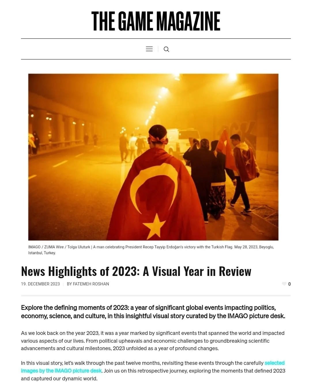 My photo was featured in the ‘News Highlights of 2023’ by The Game Magazine’s Visual Review (Imago Images) December 19, 2023.